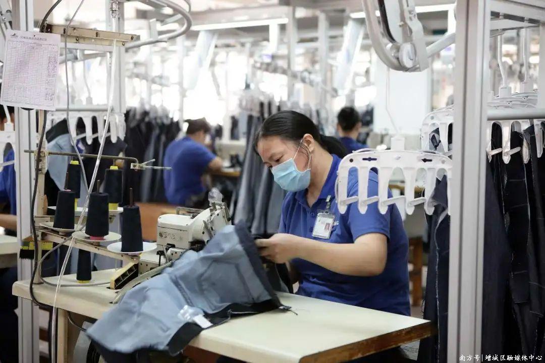 在牛仔纺织服装产业集群方面,增城区新塘镇素有“中国牛仔第一城”美誉,历经40多年发展,已形成从纺纱、染色到织布、制衣、洗漂的完整产业链。目前,牛仔服装日产能可达上百万件,产品远销世界各地,拥有“增致”“VIGOSS”“创兴”等知名品牌。